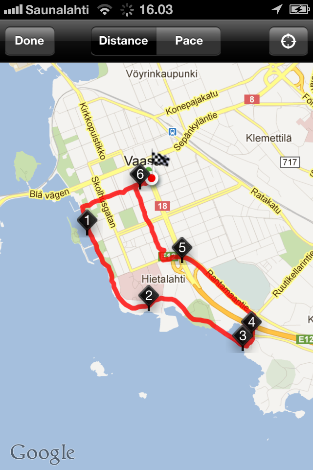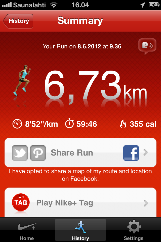Latasin eilen iPhoneen NIKEN GPS ohjelman ja testailin sitä kävellessä salille eilen. Meiltä WSC:lle tarkalleen 1km700m ja aikaa löntystelyyn meni 17minsaa 🙂