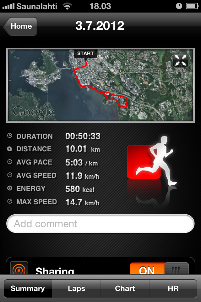 Huh kun oot kovassa kunnossa! (tai mä huonossa) juoksin meinaan just saman mittasen lenkin, samaan aikaan ja mun keskisyke oli melkein 170 😮