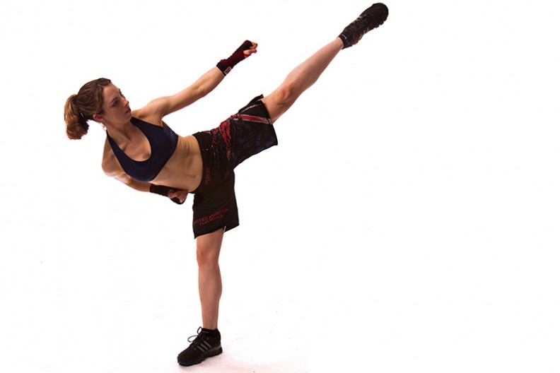 Kierto- ja sivupotku ovat mielestäni vaikeimmat tekniikaltaan koko combatissa, tai niiden eroa on hankala huomata kun mahdollisuus siihen on vain tunnin treenin lomassa.Lisäksi huomaa monen tekevän potkuja asennoissa, joissa polveen kohdistuu vääränlaista kuormitusta eli ns. tukijalka on aivan väärässä asennossa eikä kuten tuossa kuvassa. Olisi tosi tärkeää, että ohjaajat enemmän (vaikka joka jumppakerta) sanoisivat polven oikeasta asennosta – kaikki eivät voi näitä asioita tietää… Kaikilla ei ole ”koko elämän ajalta” urheilullista taustaa. Itselläni on ja siltikään en osaa potkujen tekniikoita vaikka polvea osaankin varjella! Kiitos Ainolle jumppaohjauksista:)