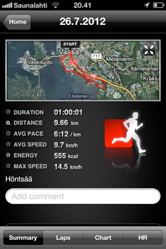 Tänään kävin heittämässä kympin höntsälenkin. Oon joutunut välttään mun vakkari lenkkiä parin viikon ajan yhden hullun LOKIN takia joka hyökki päälle kuin hullu! (ilmeisesti oli pesä jossain lähellä) Se osu jopa kerran mun päähän! Meinasin että otan haulikon mukaan ja ammun kaikki lokit matkalta kun rupes v*tuttaan niin kovaa! Tänään kuitenkin uskalsin kokeilla tuttua reittiä ja lokki oli onneksi muuttanut pois.