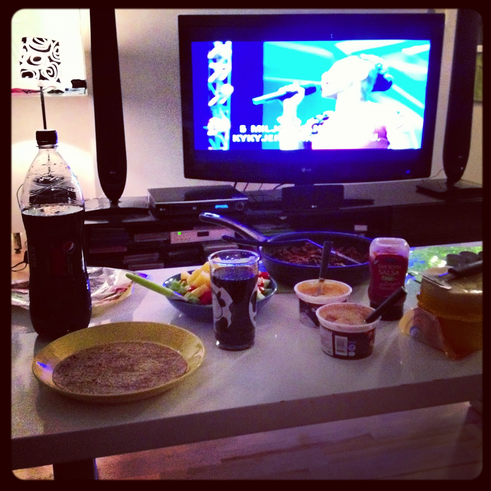 X-factor alkoi sopivasti kun ruoka oli valmista joten katoin sapuskat olohuoneen pöydälle ja nautin ohjelmasta samaan aikaan, yllättäen taas kyynelkanavat aukes kun oli niiin tunteellista ja kaikkee 😀