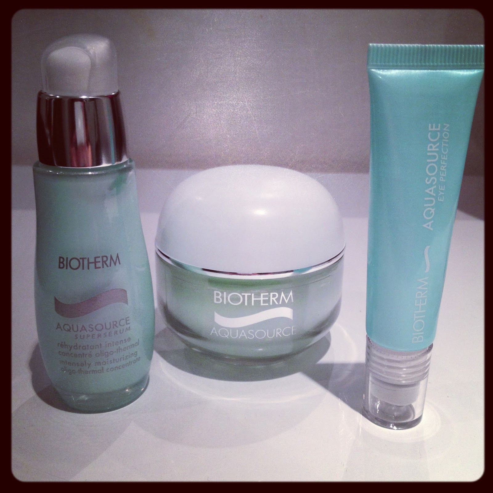 Heippa! Sain tänään odotetun postilapun tuotteista joita oon tilannut kaverin kautta. Ajattelin näin pitkästä aikaa satsata vähän ihon&hiustenhoito tuotteisiin. Nuorempana oon käyttänyt ns. parempia merkkejä ja laatua, mutta nyt viime vuosina oon ostanu lähinnä markettituotteita. Nyt kun tuli hyvä tsäänssi niin tilasin biothermin aquasource – sarjasta kasvovoiteen, silmänympärysvoiteen ja kosteuttavan seerumin.