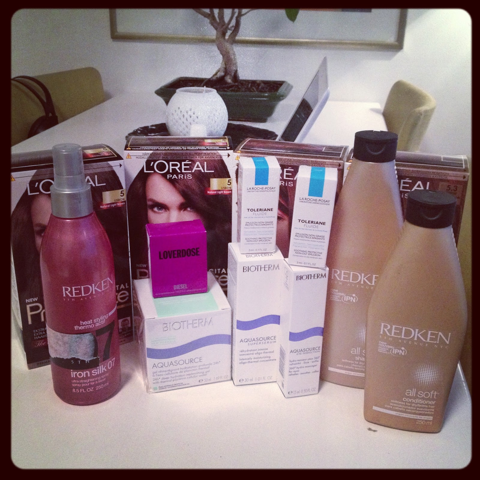 Lisäksi hiuksille Redkenin All Soft – sarjasta shampoo&hoitoaine + suoristusneste/lämpösuoja. Paketin mukana sain myös kivoja ylläreitä mm. 8 purkkia hiusvärejä eri ruskeen sävyissä, hajuvettä sekä näytteitä kasvovoiteista. Thanx muru 😉