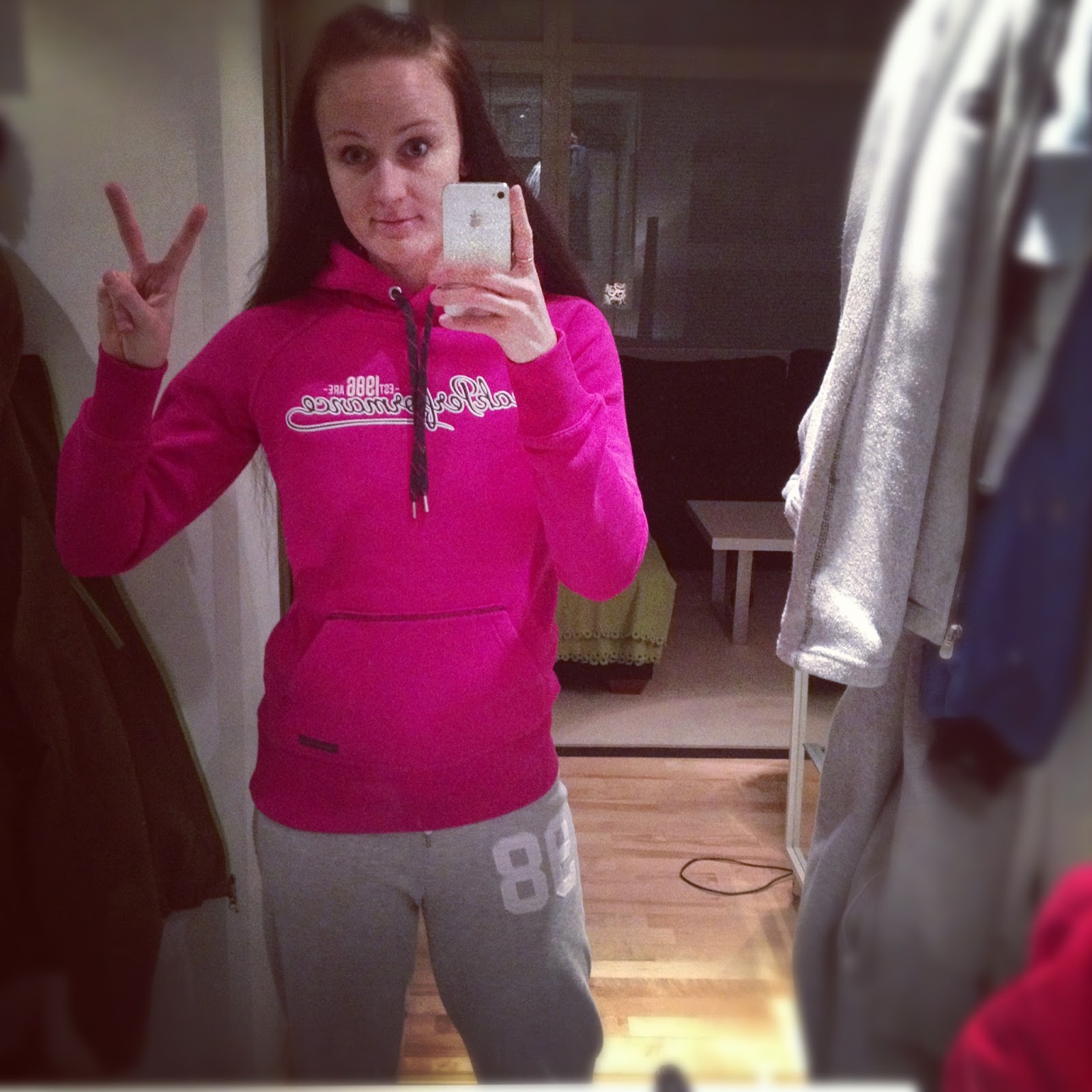 Eikä miten kiva huppari! 🙂 mä en ees tiiä miksi mulla on ”normaaleja” vaatteita kun rennot verkkarit tms on päällä päivittäin 😀