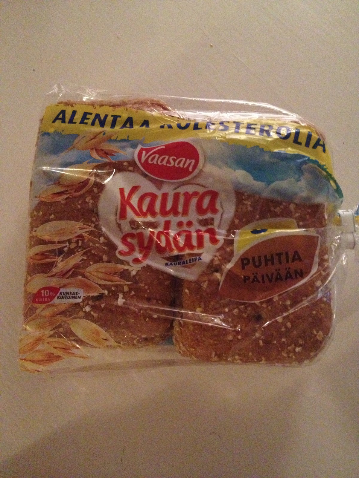 Ajattelin jakaa teille hyvän leipävinkin jonka eräs lukija vinkkasi kommenttiboksiin viikko pari sitten 🙂 Oon maininnut että kyllästyn nopeasti leipiin ja ostankin joka kerta eri sorttia. Syön leipää noin 1-2 palaa päivässä, yleensä iltapalalla. Allaolevassa kuvassa siis Vaasan Kaura Sydän leipiä joissa on kauraa 100% leivän viljasta, kuitua 10g/100g mikä on samaa luokkaa ruisleivän kanssa! Maku on erittäin namia ja joskus onkin vaikee pysyä vaan parissa palassa 🙂