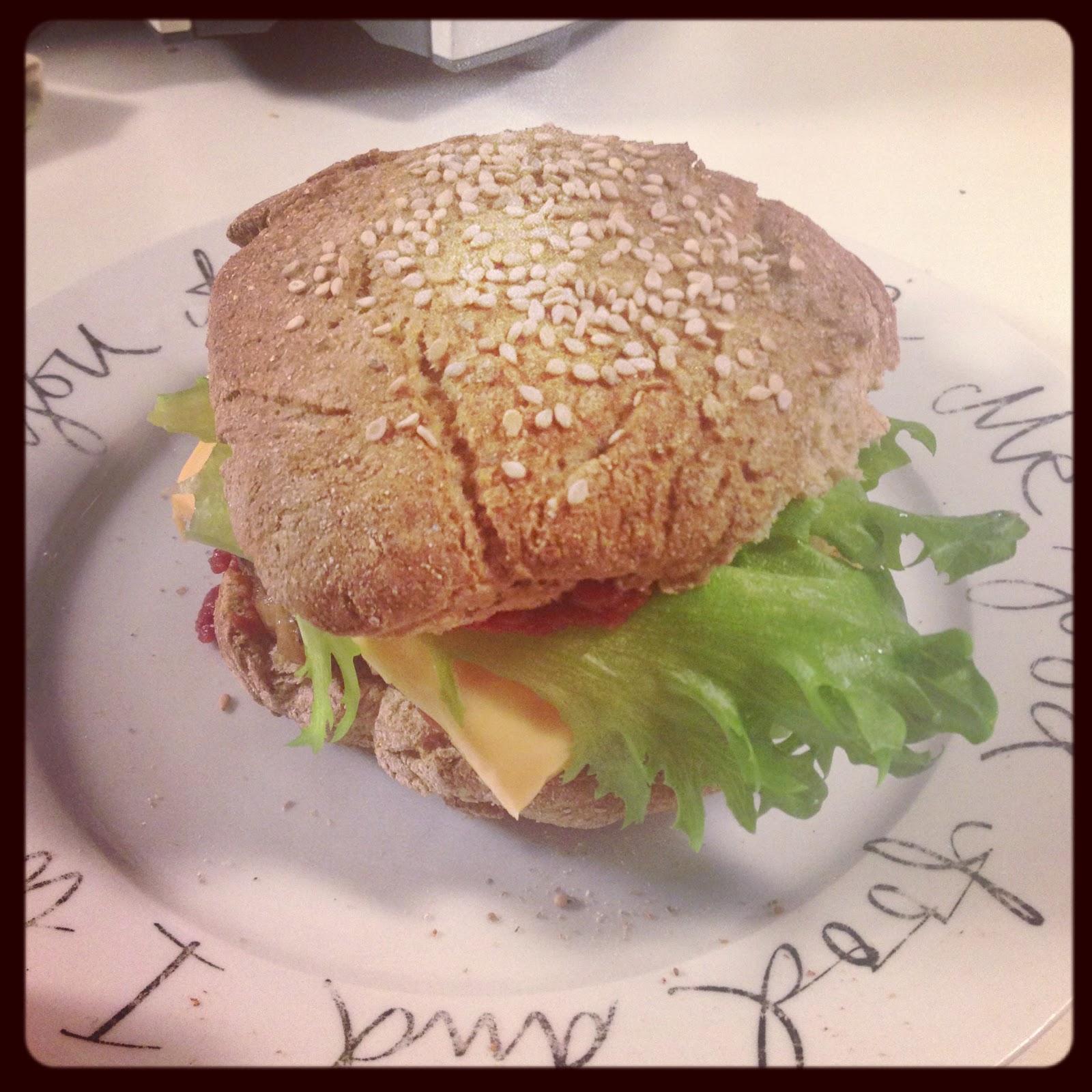 Jos haluatte voin laittaa tarkempiakin reseptitietoja. Tämä nyt ei oo mikään kovin erikoinen ruoka ja jokainen varmasti osaa tehdä purilaisia vai mitä? Väliin voi sitten iskee mitä ikinä mieli tekee. Korvasin ketsupin tomaattipyreellä, majoneesin maustetulla kermaviilillä ja lisäsin ”paljon” vihanneksia väliin (salaatti&tomaatti).