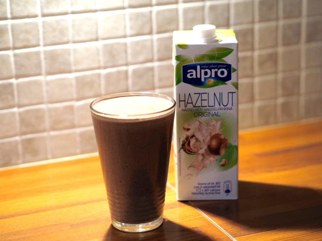 Mitä oot laittanut tohon hasselpähkinäjuomasta tehtyyn smoothieseen? Näytää tosi hyvältä! 🙂