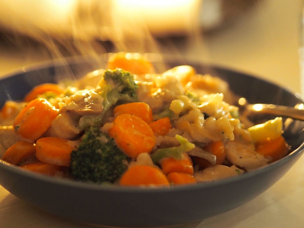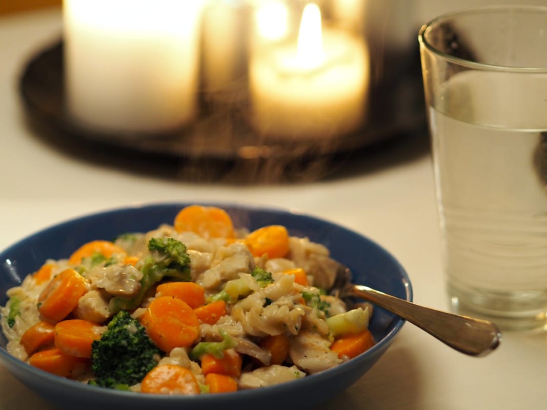 Parin kevyemmän päivän jälkeen huomasin eilen, että nyt alkaa olla sen verran nälkä, että pakko valmistaa kunnon pastamättö. Löysin sieltä samaisesta lähikaupasta luomulaatuista broileria, mitä ei ole ennen tullut vastaan ja nappasin toki paketin sitten testiin. Tästä valmistui ”kermainen kanapasta” kookosmaitoa kastikkeena käyttäen. Oli kuulkaas namia! (ps. lukiko joku muukin, että paskamättö? :D)