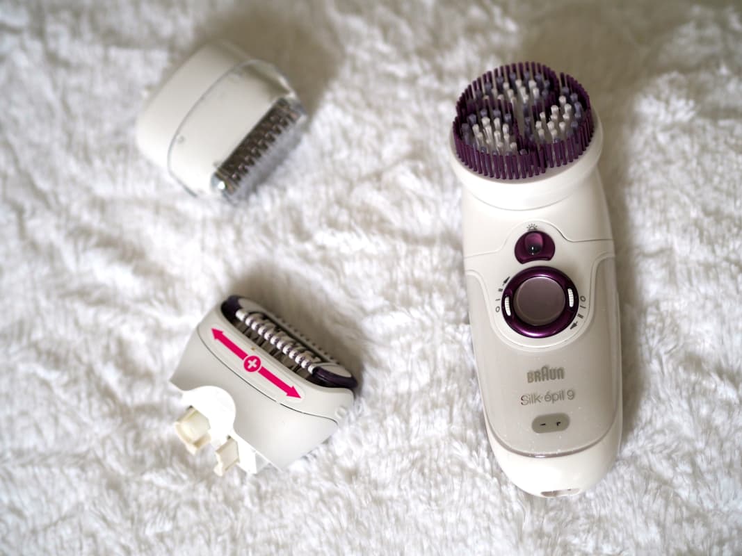 Laitteeseen kuuluu siis erilaisia osia, joita voi vaihdella tarpeen mukaan. Itse kokeilin epilointia ensimmäistä kertaa ja kyllähän se vähän nipisti kun lähti ajelemaan sääriä. Laitteen ohjeessa lukeekin, että jos karvat ovat kovin pitkiä kannattaa ensin sheivata, jotta homma menisi mukavammin. Toisella kerralla ajo oli jo huomattavasti helpompaa ja karvat kyllä pysyvät poissa pidempään kuin normaalisti, jolloin ylläpito on tosi iisiä. Epilaattorin 40 pientä pinsettiä poistavat lyhimmätkin ihokarvat ja leveämpi ajopää mahdollistaa myös laajempien ihoalueiden ajelemisen nopeasti. Laitetta voi käyttää sekä kuivana että suihkussa tai kylvyssä ja itse koin, että suihkussa tämä sujui helposti ja mukavasti. Laitteessa on erilaiset päät esimerkiksi säärien ja bikinirajan ajoon. Laitteella voi epiloida myös kasvojen ihoa tarvittaessa.