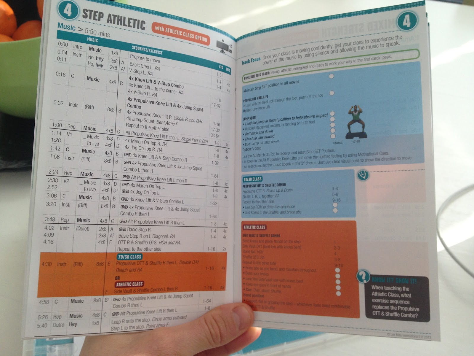 Ennen en käyttänyt koreografiavihkoa kuin BODYPUMPin opettelussa, mutta nyt oon alkanut käyttää sitä myös muissa ohjelmissa. Jos ohjelmaa opetellessa meinaa tulla blackout niin vihosta pystyy nopeasti katsoo seuraavan muuvin. Ohjatessa en käytä vihkoa juuri koskaan koska mielestäni ohjelma pitää osata niin hyvin ettei sitä tarvita.
