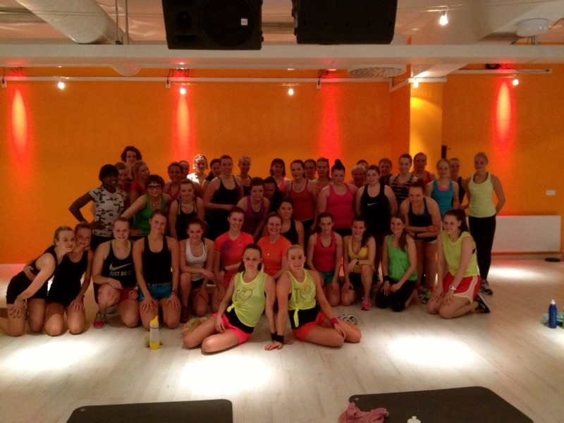 Tunnelma ikään kuin nousi kokoajan loppua kohden. Steppi sopi hyvin alkuun koska siinä tarvitsee eniten tarkkuutta. Steppi oli osalle osallistujista ihan uutta, mutta hyvin kaikki handlasi askeleet! Vedettiin siis kaikki sykkeennostot + athletic joten ihan kova aloitus! BODYCOMBATIn aikana ihmiset ja tunnelma alkoi hieman herätä ja hienosti taisteltiin koko homma alusta loppuun. BODYATTACK oli sitten se kaikista odotetuin osio ja sen huomasi. Heti kakkosesta alkaen kaikkien suupielet oli ylöspäin ja mikään ei tuntunut enää missään (paitsi nelonen:D). Wow, mikä treeni! Oli aika kaikkensa antanut olo koko setin jälkeen 🙂
