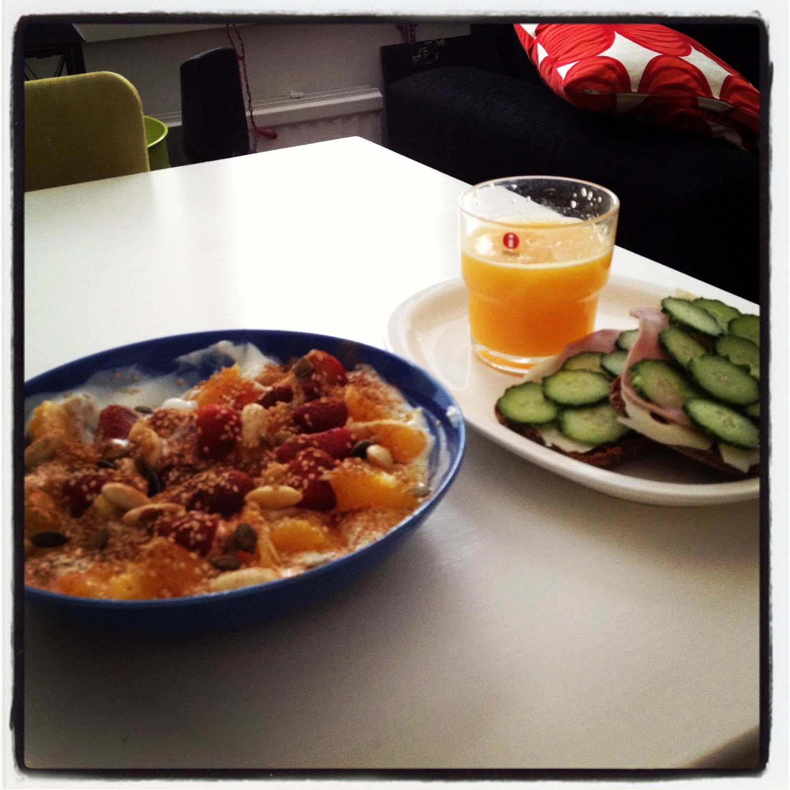 Mun ikkuna on auki parhaillaan ja nautin päivän lemppari ruokaa: teetä & merilohi-kanamuna leipiä 🙂 Vaihdoin kirjolohen meriloheen koska kirjolohi on istutettu kala ja haluan syödä aitoo fisuu ;D